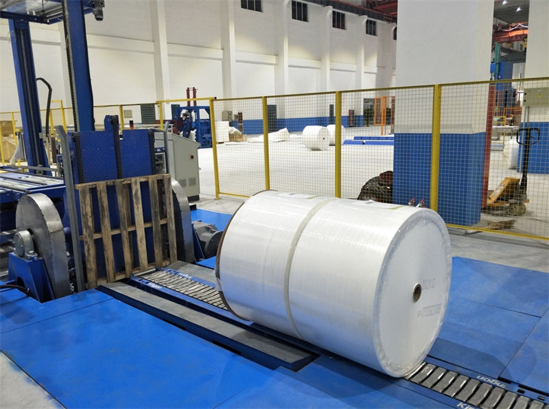 無紡布-踢紙機+圓筒式纏膜機+貼標