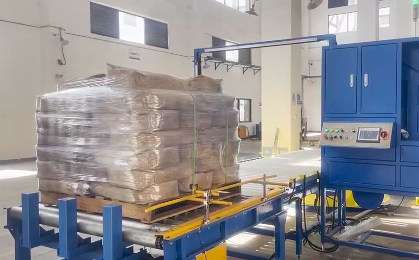 噸袋貨物-整形機+搖臂式纏膜機+井