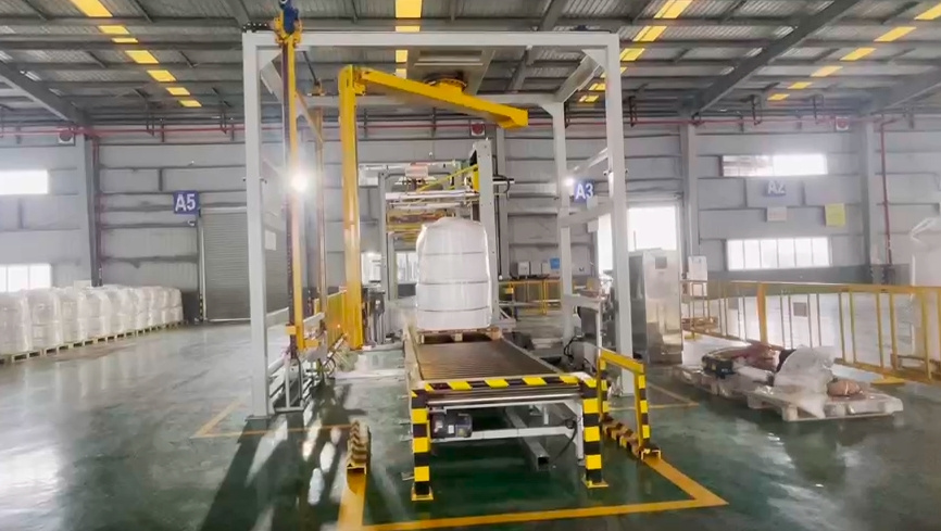 噸袋貨物-整形機+搖臂式纏膜機+井字打帶以人為本、客戶至上、創造精品